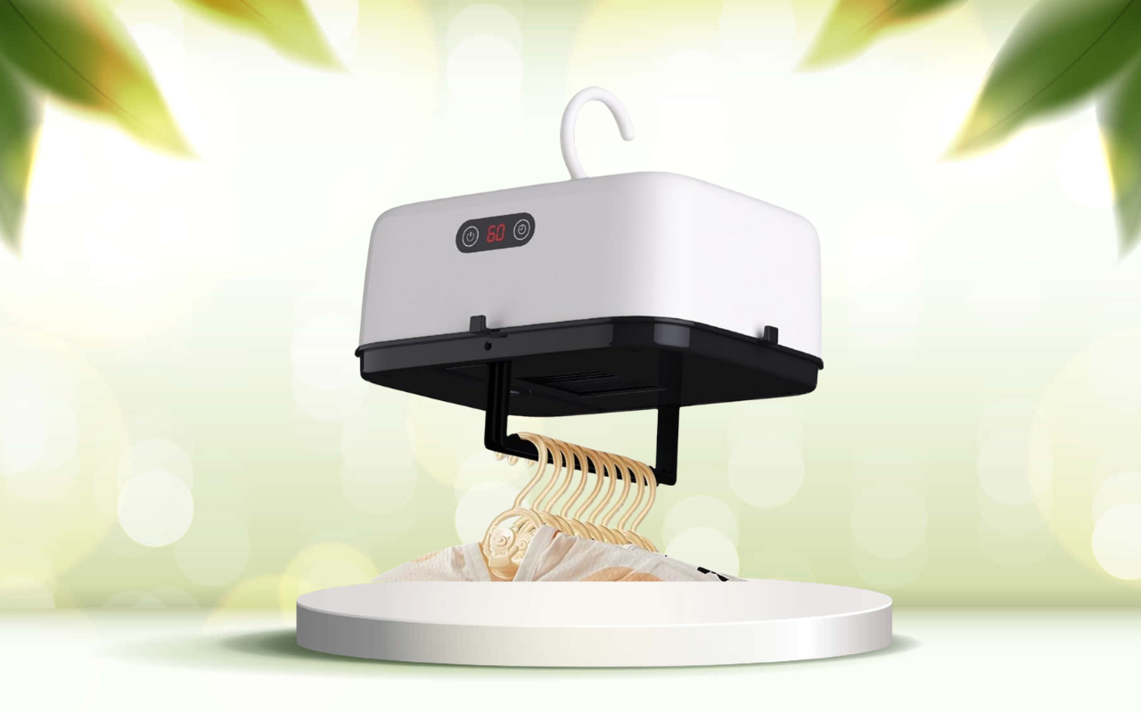 Le esigenze moderne richiedono prodotti compatti, pratici e alla portata di chiunque. Cloth Dryner risponde perfettamente a queste richieste: con le sue dimensioni di soli 28 × 13 × 22 cm si inserisce senza sforzo negli angoli più nascosti di un appartamento, dormitorio, monolocale o anche di un camper. E proprio per chi viaggia o vive in spazi ridotti, poter contare su un sistema di asciugatura interno diventa davvero un game-changer.
